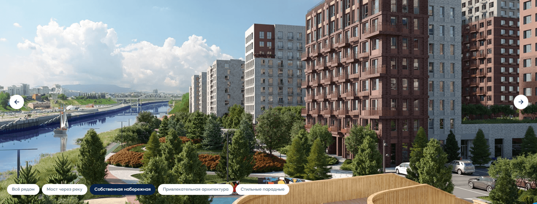 Европейская эстетика двориков, минимализм и виды на набережную. Квартиры с лоджиями, французскими балконами, террасами и панорамными окнами.