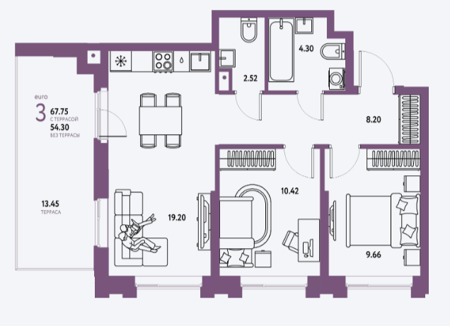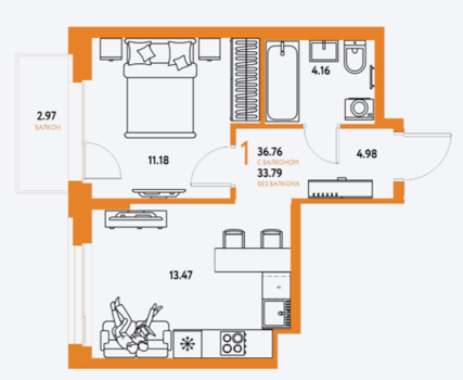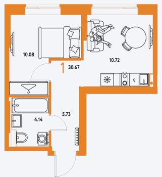 Площадь от 30.67 м2