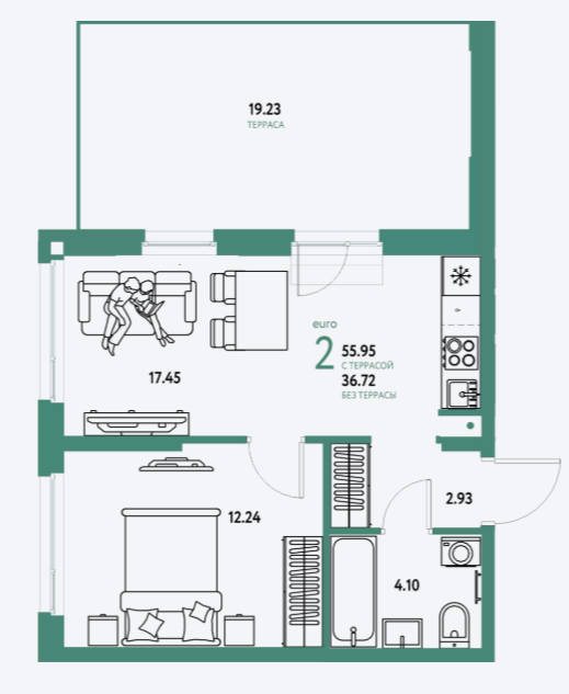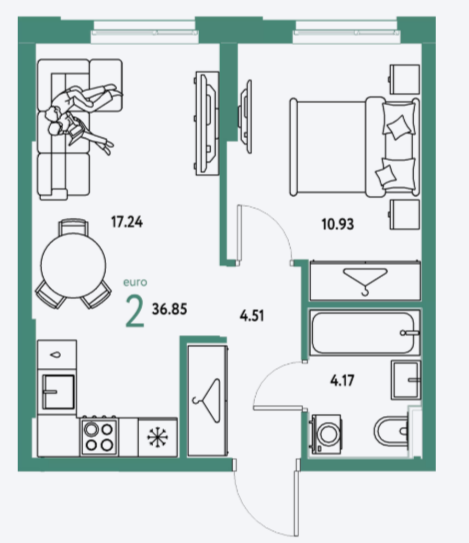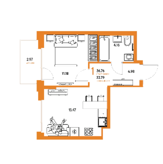Площадь от 36.85 м2