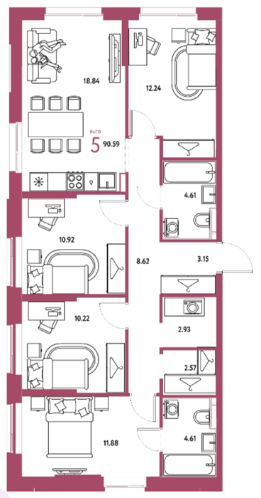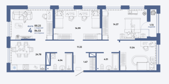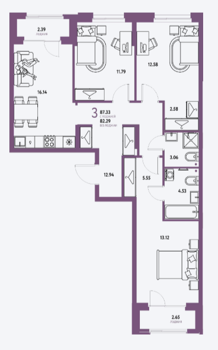 Площадь от 90.59 м2