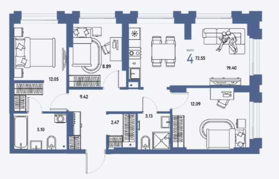4 -комнатные