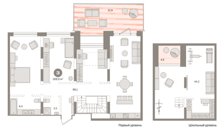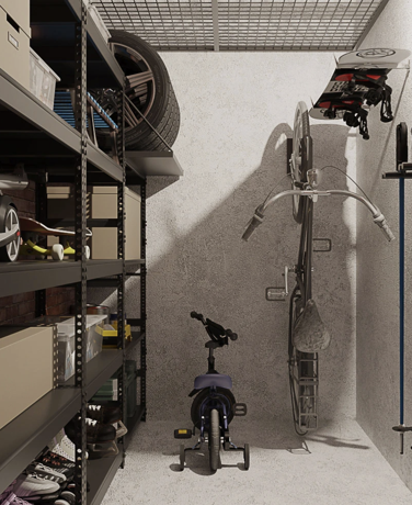 В домах мы спроектировали кладовые. Это специальные помещения, предназначенные для хранения сезонных вещей: горнолыжной экипировки, сноубордов, велосипедов