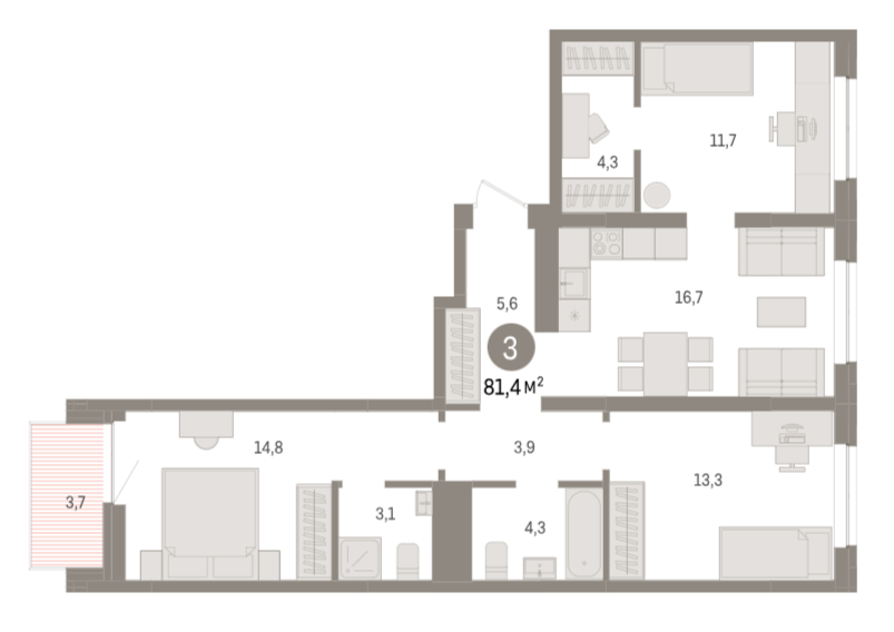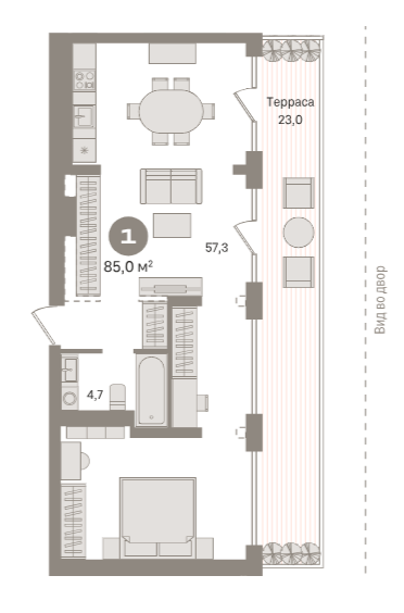 Терраса позволяет проводить время на свежем воздухе, не покидая квартиру.