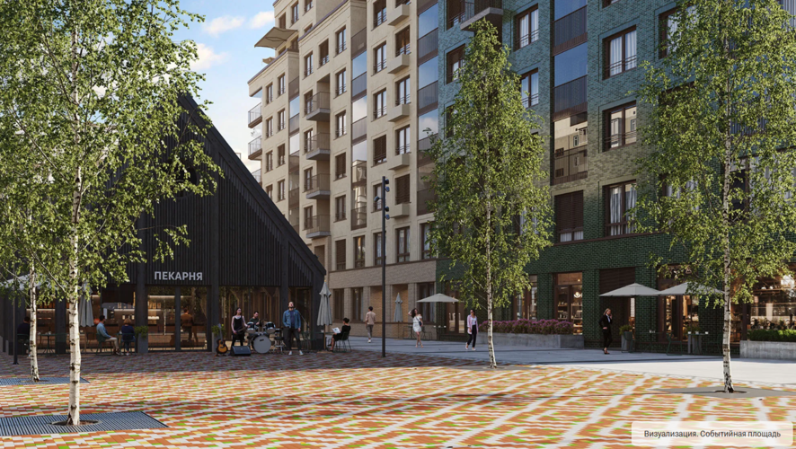 Местный бульвар с фонтаном проходит через всю застройку, есть детская зона, места для отдыха и арт-объекты. В проекте появятся места для более уединённого отдыха, например: купеческий дворик, оформление которого станет отсылкой к истории тюменского купечества
