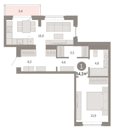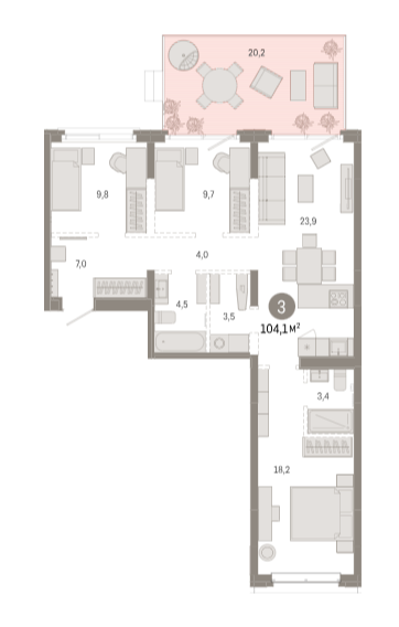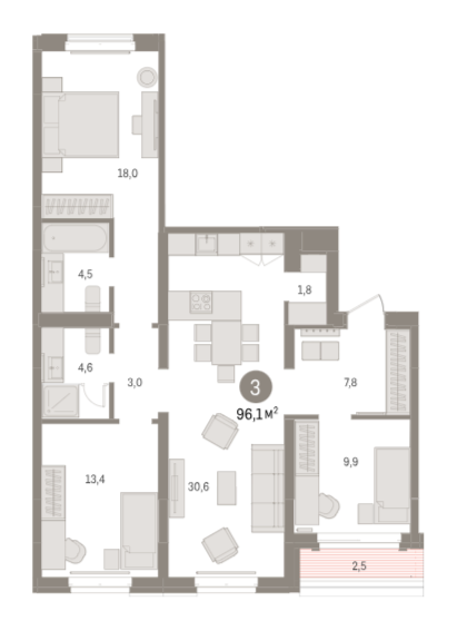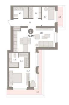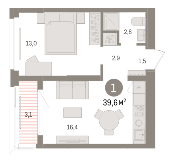 Площадь от 39.6 м2