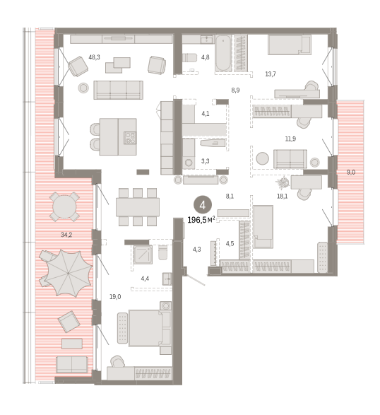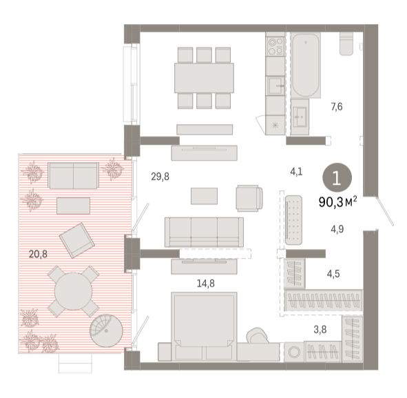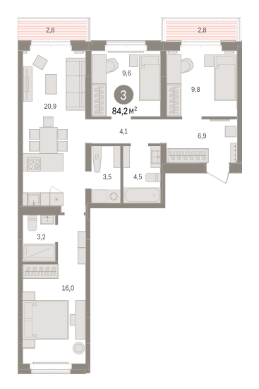 Площадь от 84.2 м2