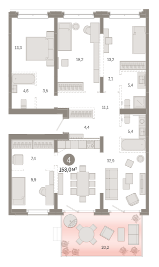 Площадь от 153 м2